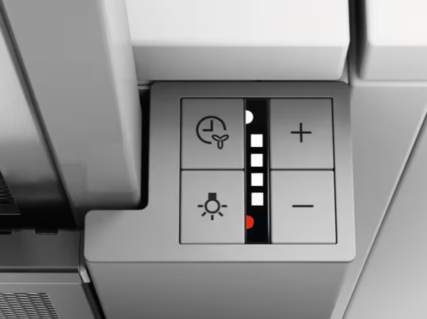 Mittels der elektronischen Tasten lassen sich alle Funktionen der Dunstabzugshaube vornehmen – von der Änderungen der Gebläsegeschwindigkeit bis hin zur Anpassung der Lichteinstellug. - PERFECTFIT: REIBUNGSLOSE BEST-IN-CLASS-MONTAGE