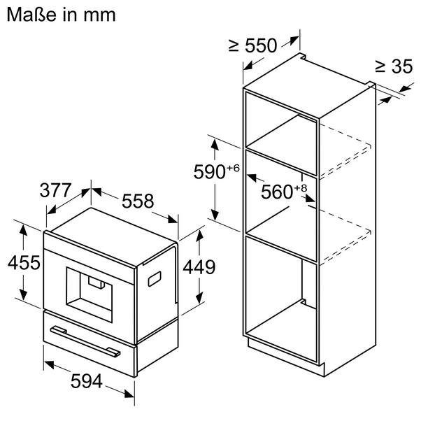 - Nischenbreite minimal: 558 mm