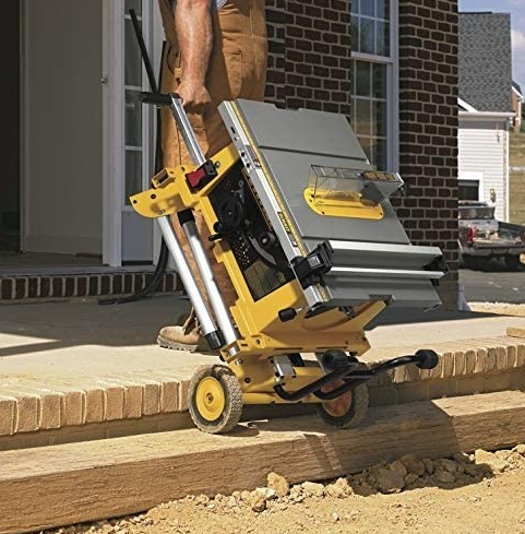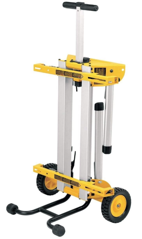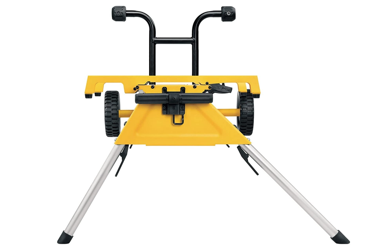 Praktisches, fahrbares Untergestell für Tischkreissägen mit einklappbaren Füßen und Transportrollen. Passend für die DCS7485 und DWE7485.