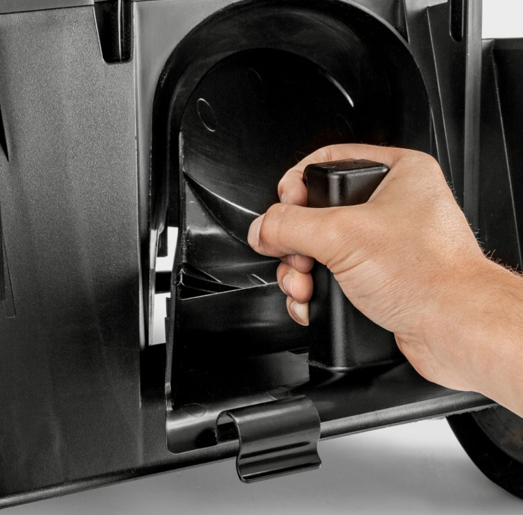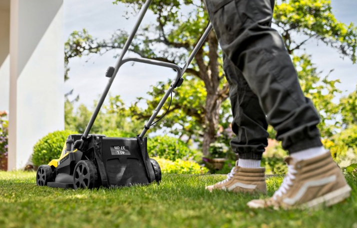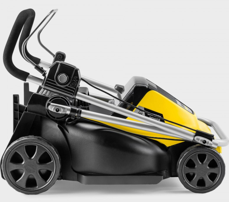 Der höhenverstellbare Führungsholm und der integrierte Tragegriff bieten ergonomischen Komfort und einfache Handhabung. Durch das kompakte, klappbare Design lässt sich der Mäher platzsparend lagern und mühelos transportieren.