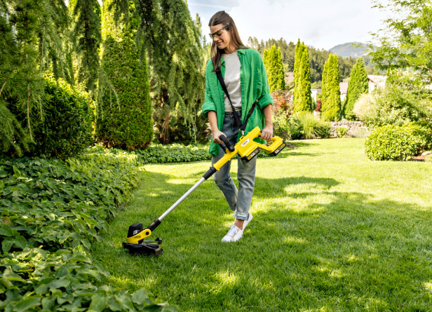 Für perfekte Rasenkanten und schwer erreichbare Stellen Der Kärcher Akku-Rasentrimmer LTR 3-18 Dual Battery S…