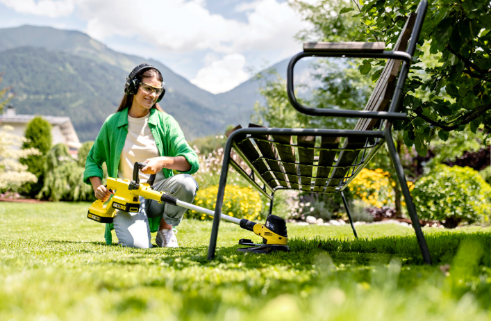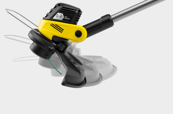 - Drehbarer & neigbarer Trimmerkopf: Perfekt für saubere Rasenkanten und das Arbeiten unter Hindernissen