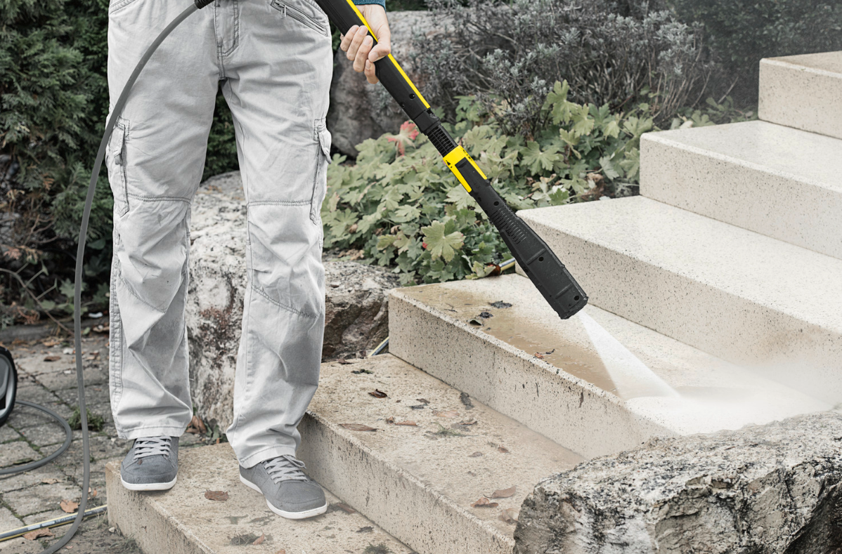 Inklusive Home Kit mit Flächenreiniger T 5 und Stein- & Fassadenreiniger 3-in-1 (1 l) für effiziente Reinigung großer Flächen wie Einfahrten, Terrassen oder Hausfassaden.