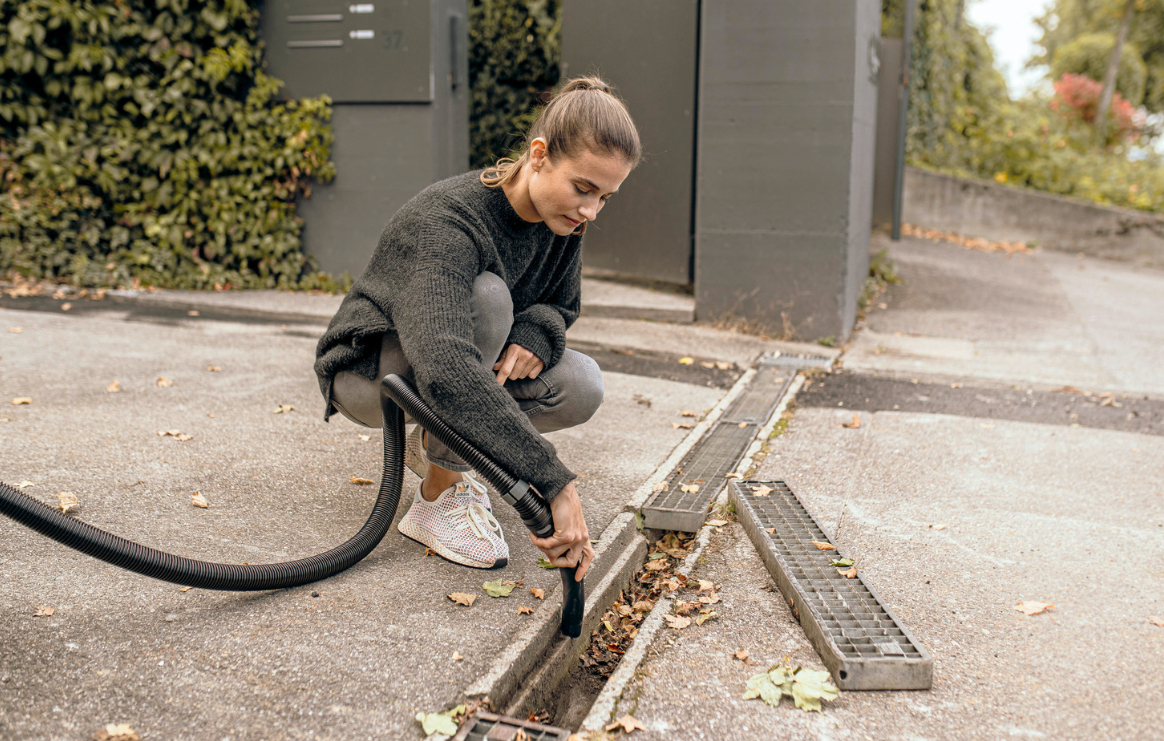 - Blasfunktion: Entfernt mühelos Schmutz an schwer zugänglichen Stellen – z. B. in Kiesbeeten.