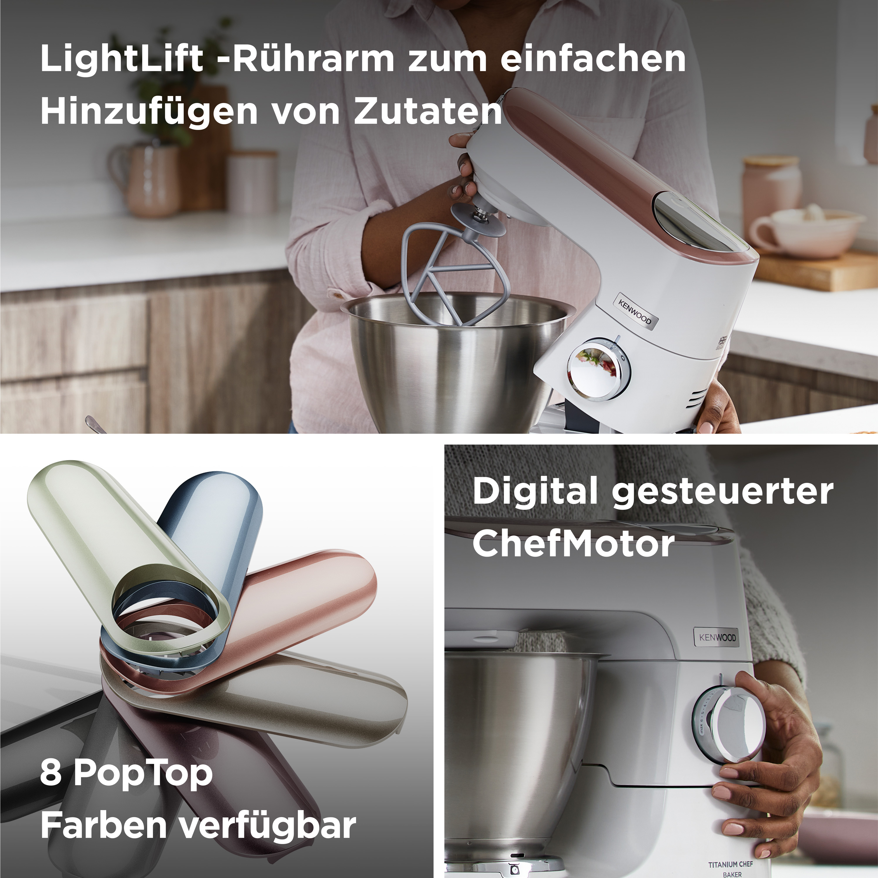 Für die Titanium Chef Baker gilt: Außen hui, innen hui! Der 1.200 Watt starke ChefMotor mit dem Kenwood Planetarischem Rührsystem und der LightLift-Rührarm machen die Maschinen zum perfekten Küchenhelfer für angehende Back- und Kochkünstler. Perfekt für alle, die viel Wert auf manuelle Küchenarbeit legen, sich aber in ihren Kreationen nicht einschränken lassen wollen.