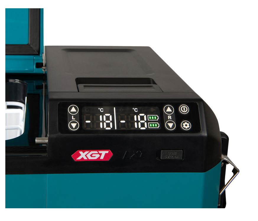 Die Makita CW004G Akku-Kühl- und Wärmebox bietet effektives Kühlen bis -18°C und Warmhalten bis 60°C. Mit zwei einstellbaren Temperaturzonen und einer Differenz von bis zu 30°C ist sie ideal für verschiedene Anwendungen. Sie kann mit 40V max, 18V, 12V/24V DC, sowie 230V betrieben werden. Das große Display zeigt Soll- und Ist-Temperatur sowie den Akku-Ladestand. Perfekt für unterwegs!