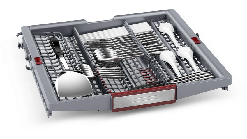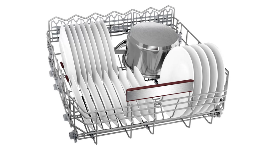 • Klappbare Tellerhaltereihen im Oberkorb (6x)