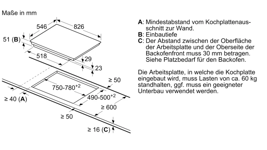 - Gerätehöhe über Arbeitsplatte: 8,0 mm