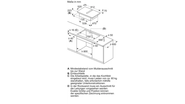 - Nischenhöhe minimal: 490 mm